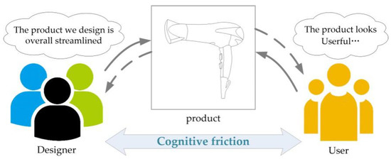 In view of the asymmetry of cognitive information, Alan Cooper et al. proposed the concept of cognitive friction (CF) [10] and applied it to the field of product design, to express that the products developed by designers could not fully meet user expectations. This phenomenon might cause confusion for users when using the product [11]. From Alan Cooper, we know that the concept of CF involves three parts: the designer, product, and user. Among them, the product is a cognitive object, and the user and designer are cognitive subjects. In the final analysis, the generation of CF is caused by the cognitive difference between designers and users. Therefore, visually displaying and balancing CF is an important way in which to solve the cognitive difference between designers and users, which will also provide a certain theoretical basis for AI to accurately grasp users’ emotions.