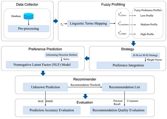 In actual life, consumers encounter difficulty in finding which items they might prefer when large quantities of information are created every day. The complication of searching targets reduces consumers’ interest and damages their loyalty to one website or one product. In this case, the recommender system (RS), usually provided by commercial companies, can help consumers by analyzing their preferences according to historical feedback information and thus recommending potential items of interest to them. Consumer satisfaction depends on the recommendation accuracy of the products and consequently impacts the commercial company’s profit; thus, the RS performance plays a substantial role. To make high accuracy prediction of the RS, researchers and commercial companies have explored many recommendation models [6,7,8]. The key of these models is to properly characterize consumer preference and offer a reliable prediction. Specifically, the consumer feedback data and the preference modeling approach are two vital issues in determining the characterization process as the first key step, and the prediction algorithm subsequently decides on the performance of the follow-up task.