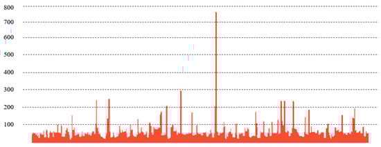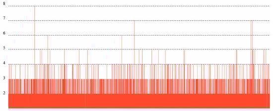 For good visualization of the data and to obtain an overview of the consumer listening habits for further analysis, the data are shown from various aspects in Figure 5 and Figure 6. The maximum frequency with which each consumer has listened to an exact song is shown in Figure 5, the range of which is between 1 and 745 with most less than 100.