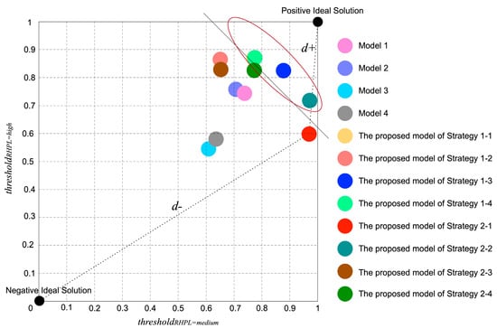 The Technique for Order Preference by Similarity to Ideal Solution (TOPSIS) [50], as a typical MCDM method, can provide a scientific ranking of results based on the distance to positive ideal solution and the negative ideal solution. Regarding the F-measure at different preference levels as evaluation attributes and adopting the average attribute weight, the ranking of these strategies can be obtained with the TOPSIS method. The ranking results are Strategy 1-3 Strategy 2-2 Strategy 1-4 Strategy 1-1 Strategy 2-4 Strategy 2-1 Strategy 1-2 Strategy 2-3. Figure 11 illustrates the selection results.