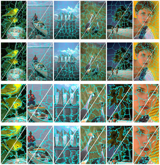 - Xiao, X.; Zhou, Y.; Gong, Y. Content-adaptive superpixel segmentation. IEEE Trans. Image Process. 2018, 27, 2883–2896. [Google Scholar] [CrossRef]