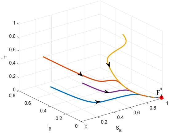 - If , then the endemic point is shown to be locally asymptotically stable by numerical simulations.