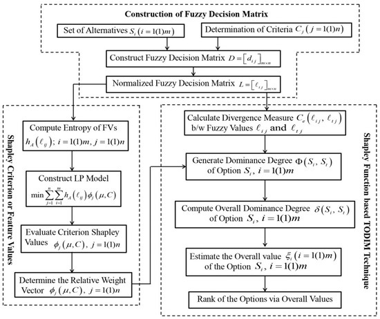 Let be the options on criteria then the procedure for the Shapley function-based TODIM technique is as follows (see Figure 1).
