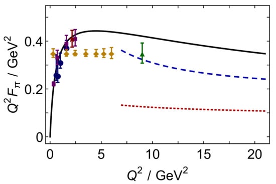 - Gutiérrez-Guerrero, L.X.; Bashir, A.; Cloet, I.C.; Roberts, C.D. Pion form factor from a contact interaction. Phys. Rev. C 2010, 81, 065202. [Google Scholar] [CrossRef]