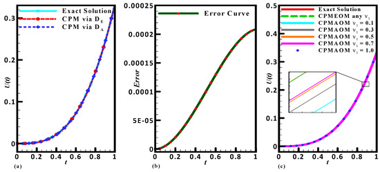The graphical representation of Bagley–Torvik (BT)-equation. (a) Exact solution, CPM solution via and CPM solution via . (b) Error curve for CPMAOM.