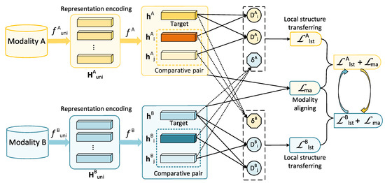 Accordingly, the loss function of transferring local structures of modality B to A could be written as: