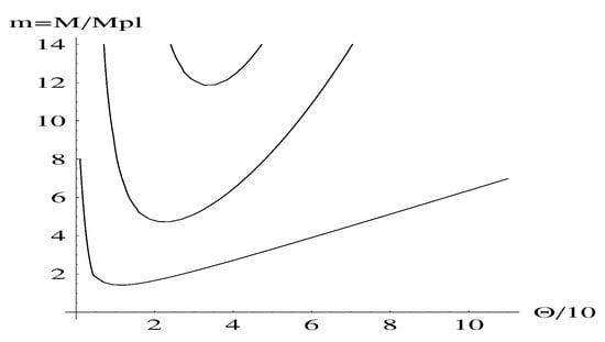 from which the remarkable prediction of black hole remnants of finite positive mass as the final stage of the Hawking evaporation has been obtained. In fact, it is already clear from Equation (23) that the mass M cannot drop below during the evaporation process.