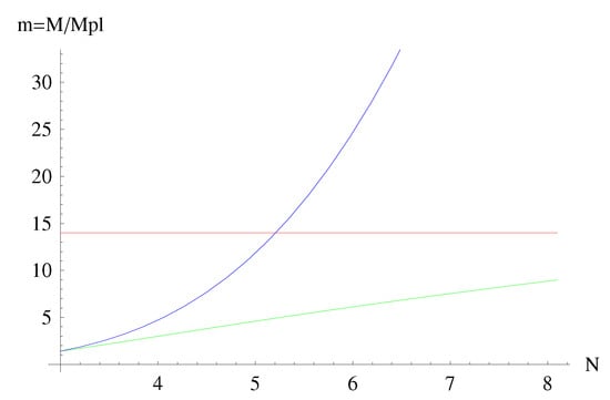 and the minimum mass is , in agreement with Equations (33) and (34). Finally, the emission rate Equation (A29), which regulates the emission of photons or gravitons in four dimensions, can be written as an equation for the only unknown