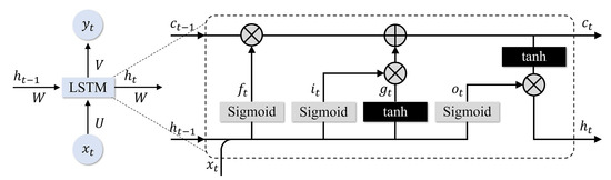 From Figure 8, each gate that works inside an LSTM cell is mathematically defined as the following expressions [33]:
