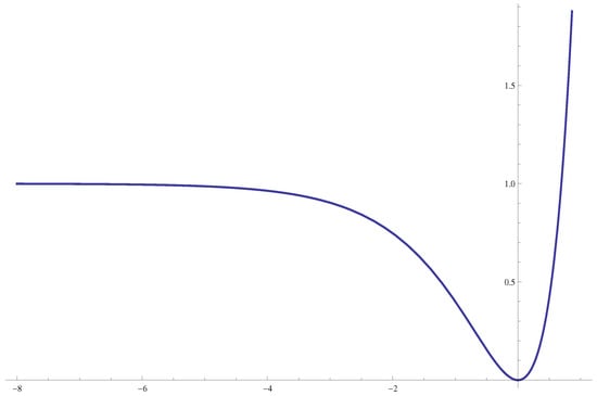 where and are the free parameters (with ‘mass dimensions’ and ) of the theory. The above F(R) model is free of ghosts for and it satisfies , which indicates that there exists a flat spacetime solution. Moreover such an exponential F(R) model is known to provide a good dark energy model for suitable parametric regimes of and [,,]. The exponential correction over the usual Einstein–Hilbert action becomes important at cosmological scales and at late-times, providing an alternative to the dark energy problem. In addition, the exponential F(R) (7) can be extended in such a way that is able to produce an early inflation as well (see [] for the unified description of inflation and dark energy epochs from exponential F(R) gravity). Furthermore, one more extension of this type of exponential gravity with log-corrected term was proposed to explain the unified universe history (see Ref. []).