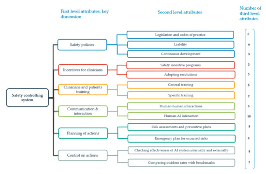 This article developed a system to evaluate the safety performance of AI models implemented in healthcare. The proposed system was constructed by applying the three-level MAVT approach [36]. The first level attributes, adopted from Fernández-Muñiz et al. [37], were the main elements of safety standards and guidelines. The 14 attributes of the second level and the 78 elements of the third level were extracted by using a systematic literature review, conducting interviews, and performing two small questionnaire-based surveys.