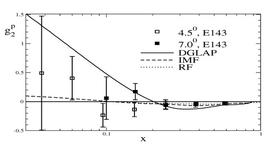 - Abe, K.; Akagi, T.; Anthony, P.L.; Antonov, R.; Arnold, R.G.; Averett, T.; Band, H.R.; Bauer, J.M.; Borel, H.; Bosted, P.E.; et al. Measurements of the Proton and Deuteron Spin Structure Function g2 and asymmetry A2. Phys. Rev. Lett. 1996, 76, 587. [Google Scholar] [CrossRef] [PubMed]