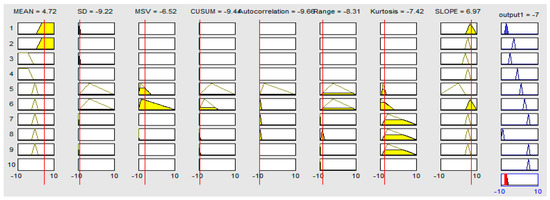 | 8 | If (MEAN is MED) and (MSV is LOW) and (CUSUM is LOW) and (Autocorrelation is LOW) and (Range is MED) and (Kurtosis is HIGH) and (SLOPE is HIGH) then (Pattern is Normal) |
