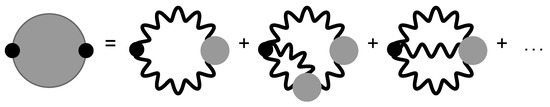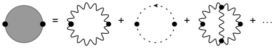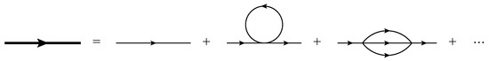 The large N saddle point equation of Equation (54) is in fact identical to the Hartree–Fock approximation for the self-energy, where the bare propagator in the loop is replaced by the dressed one, with a mass parameter m to be determined by the Hartree–Fock self-consistency conditions. Figure 2 shows the typical perturbative expansion for the proper self-energy of a self-interacting scalar field.