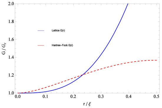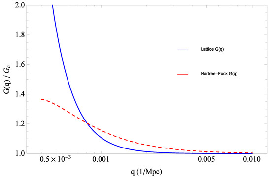 Nevertheless, quite generally the resulting diagrammatic expressions are still ultraviolet divergent, and the procedure thus requires the introduction of an ultraviolet regularization, such as the one provided by dimensional regularization, an explicit momentum cutoff, or a lattice as in the Regge–Wheeler lattice formulation of gravity [12,13]. Once this is done, one then finds a number of significant similarities of the Hartree–Fock result with the (equally perturbatively non-renormalizable in ) nonlinear sigma model. Specifically, in the quantum gravity case one finds that the ultraviolet fixed point in Newton’s constant G is at in two spacetime dimensions, and moves to a non-zero value above . Nontrivial scaling dimensions are found between and , above which one obtains Gaussian (free field) exponents, thus suggesting that, at least in the Hartree–Fock approximation, the upper critical dimension for gravity is . One useful and interesting aspect of the above calculations is that the Hartree–Fock results are not too far off from what one obtains by either numerical investigations within the Regge–Wheeler lattice formulation, or via the dimensional expansion, or by truncated renormalization group methods. Furthermore, as will be shown below, the Hartree–Fock approximation provides an explicit expression for the renormalization group (RG) running of Newton’s constant, just like the Hartree–Fock leads to similar results for the nonlinear sigma model. As in the lattice case, the Hartree–Fock results suggest a two-phase structure, with gravitational screening for , and gravitational antiscreening for in four dimensions. Due to the known nonperturbative instability of the weak coupling phase of , only the phase will need to be considered further, which then leads to a gravitational coupling that slowly increases with distance, with a momentum dependence that can be obtained explicitly within the Hartree–Fock approximation.