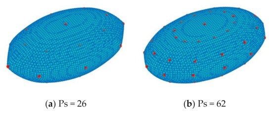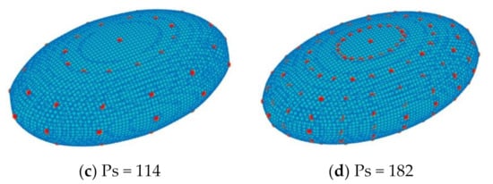 To analyze the uncertainty of sample points, four sets of uniformly distributed sample points are selected to reconstruct the ellipsoidal surface. The sample points are obtained by the interpolation in Equation (16), and their numbers are approximately increased twofold.