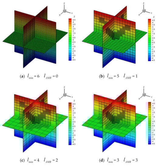 - Berger, M.J.; Oliger, J. Adaptive Mesh Refinement for Hyperbolic Partial Differential Equations. J. Comput. Phys. 1984, 53, 484–512. [Google Scholar] [CrossRef]