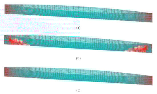 Based on the results of Case 3, Figure 21 compares the KCS standard explicit model and implicit RBF models reconstructed by MQ-RBF of c = 0 and CSRBF of , respectively. It can be seen that there is no visible difference between the standard ship explicit model (a) and the implicit model by the MQ-RBF of c = 0 (b). However, our method only utilizes the scatter points for automatic modeling, which reduces the manual operation in explicit modeling. Besides, the implicit surface by the CSRBF is smoother, except for the stern and bow which have local incorrect redundant fragments. That is because the CSRBF possesses relatively high smoothness and convexity but the curvatures of the bow and stern of the KCS hull contain both concave and convex features. By comparison, the MQ-RBF of c = 0 provides higher fidelity. Therefore, we select the MQ-RBF of c = 0 to simulate the multi-hull system.