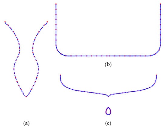 The capabilities and effects of MQ-RBFs are mainly controlled by the shape parameter c. The c is used as the smoothing factor to make the reconstructed surface smoother. However, if c is too large, it may cause the ill-conditioned matrix and increased numerical errors [34]. Our previous works [17,18,19] use c = 0 in hull modeling. This paper further tests two types of shape parameters c: the constant c, and the variable c of MQ-RBF. Table 1 lists some shape parameters c used in MQ-RBF.