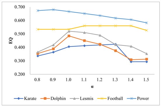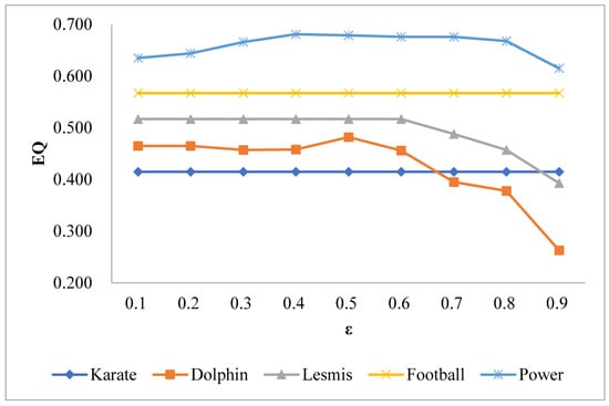 The space complexity of network G is . The space complexity of all neighbors of each node is since each edge should be calculated. Thus, the time complexity of of each node is also . Further, the space complexity and time complexity of , , and are also . Obviously, the time complexity of of each node is and the space complexity of is . Hence, the time complexity of lines 2–5 in Algorithm 1 is . Since each node will be checked once, the time complexity of lines 6–13 is . Therefore, both the space complexity and time complexity of Algorithm 1 are .