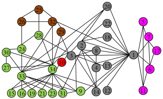12]. The community structure (module or cluster) is an important feature of a complex network, which means that the network is composed of several communities. The connections between the nodes in the community are very close, while the connections between the communities are relatively sparse [