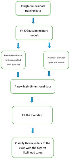 The flowchart of the classification is presented in Figure 1. In addition, according to Jasra, Holmes and Stephens (2005) [20], there are label switching problems in the Bayesian analysis of finite mixture models. The problems are mainly caused by the nonidentifiability of the components under symmetric priors [20,21]. To deal with the label switching problem, we may avoid this problem by checking the results of the iterations, and relabel them when a label switching occasion occurs.