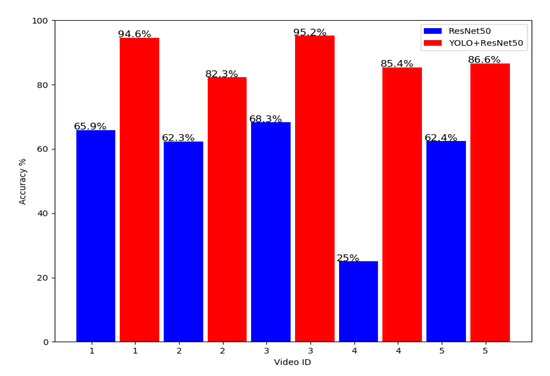 Performance metrics to compare ResNet50-only and YOLO + ResNet50.