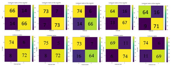 The settings of the classifiers were as follows: SVM was trained with three different kernels: Linear, Gaussian, and Polynomial. For RF, a different number of trees was tested. It was found that 100 trees produced the best performance with the testing dataset. On the other hand, to validate the impact of the distance function in KNN, different functions were evaluated, and Euclidean distance was nominated to be utilised in this experiment. In addition, a different number of neighbours was tested in selecting the best classifier, which was 30 nn to be employed in the experiments. Furthermore, the hyperparameters of ELM were also investigated to optimise the results. ELM, with 9000 hidden nodes and 215 regulation factors, was the best candidate.