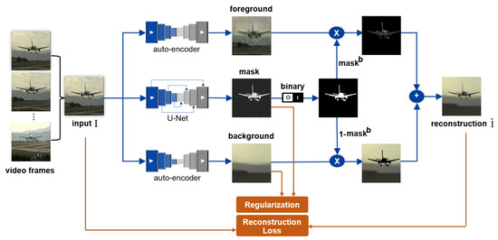 Figure 1 illustrates our unsupervised object discovery (UnsupOD) framework. We formulate the problem of unsupervised learning in videos as the encoder–decoder structure that internally factors the video frame into a foreground, a background, and a mask, without direct supervision for any of these factors. However, without further assumptions, decomposing an image into these three factors is ill-posed. We construct the model that is based on the following assumptions.