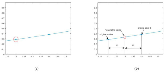 Schematic diagram of resampling signal selection. (a) The resampling position coincides with the original signal position; (b) The resampling position is between two adjacent points.