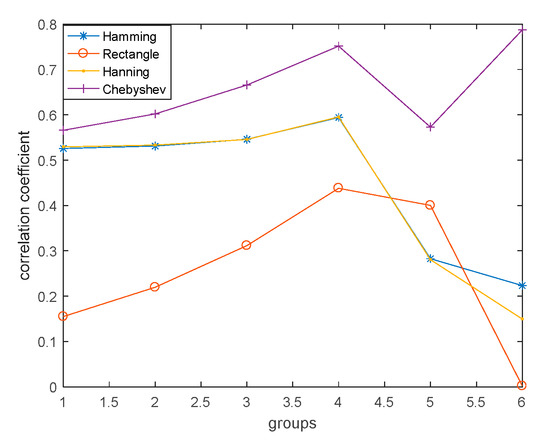 In order to further verify the superiority of this structural element, different window functions were selected as structural elements of morphological filtering to filter the signals. The correlation coefficients of filtering signals and original signals were calculated for different groups of data, as shown in Table 1.