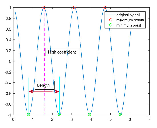 (2) Finding all the maxima and minima of the original signal, the number of extreme points is denoted as Nm and Ni, respectively. Calculating the number of discrete points between adjacent minima.