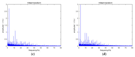 In order to verify the effectiveness of the method proposed, the paper analyzed the simulation signal by selecting the Hanning window, Hamming window MSMF and the method in this paper. In the Figure 11a,b, Hanning window and Hamming window are used to filter the signal respectively. It can be seen from the figure that although the two methods can identify the fault characteristic frequency in the noise interference, the difference between the interference frequency and the fault frequency in the above two methods is not particularly obvious. It can be seen from (c) and (d) in the figure that the fault characteristic frequency of MSMF and VMSMF can be more significantly distinguished than Hamming window and Hanning window. Compared with MSMF, VMSMF method can better suppress other interference frequency components except fault characteristic frequency. The analysis results showed that the method proposed in this paper is more capable of highlighting the fault characteristics, thus verifying the effectiveness of the method proposed in this paper.