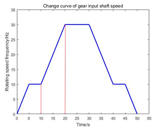 To select the optimal sampling order, it is necessary to know the frequency variation function of the original signal in advance, and derive the value of the optimal sampling order according to the frequency conversion function. Suppose the function of the input shaft speed of the gearbox with time is: