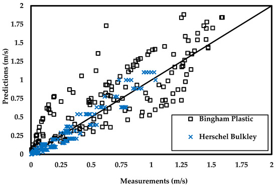 Probably, the most accurate explicit model for Vs in Newtonian fluids was developed by Ferguson and Church [45]. Agwu et al. [1] found its performance as comparable to ANN. The FC model (Equation (22)) applies to both laminar and turbulent conditions.