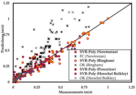 - The SVR-Poly can predict Vs of spherical particles in Newtonian and different varieties of non-Newtonian fluids. Whereas, the FC applies to only Newtonian fluids, and the OK could be applied to two non-Newtonian fluids.