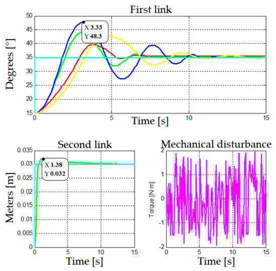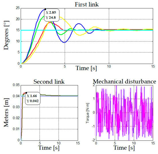 Movement of each link of the robotic arm when this follows the reference pattern, and mechanical disturbances.