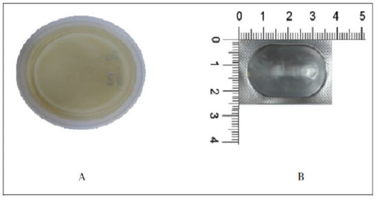 (A) The optimized mucoadhesive buccal films (MBF), (B) the individualized MBF unit dose.