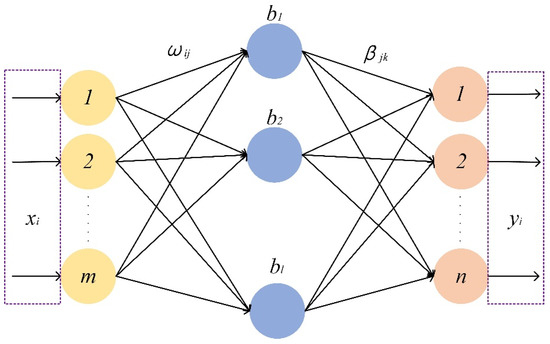 ELM is a kind of feedforward neural network, which has good generalization performance and extremely fast learning ability [31]. ELM does not need to adjust the weight based on gradient back propagation, but sets the weight through Moore Penrose generalized inverse. Its internal structure is shown in Figure 2.