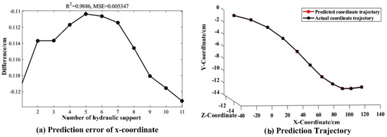 The hydraulic support and scraper conveyor continuously advance 10 cycles. Ten cycles are predicted through the first nine cycles. The predicted results and the position curve of scraper conveyor are shown in Figure 8.