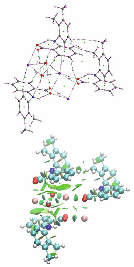 QTAIM and NCI diagram for potassium mefenamate known from the literature (NUSTAX) [7]. Colors in diagrams as in Figure 4.