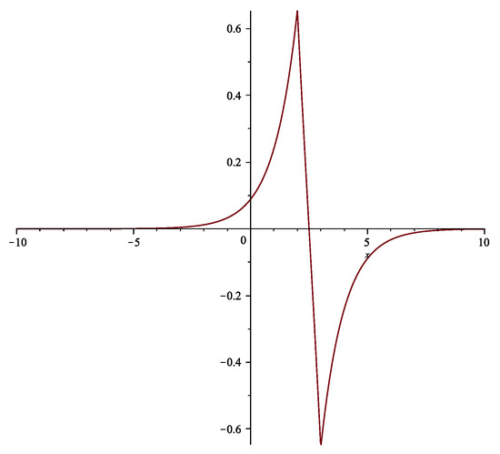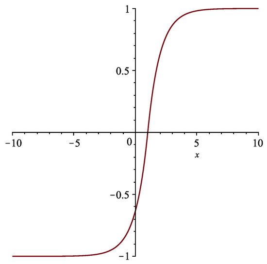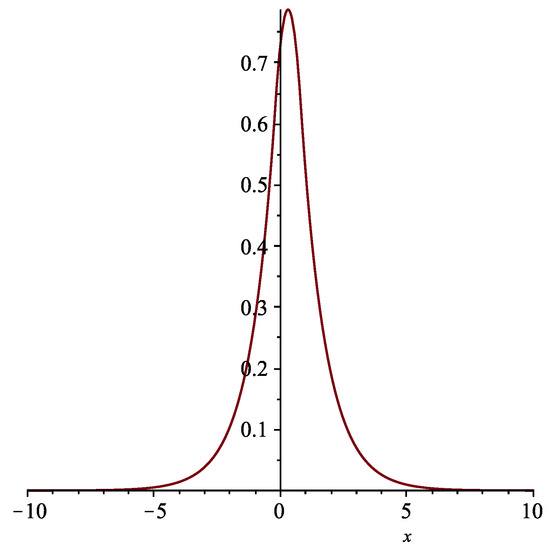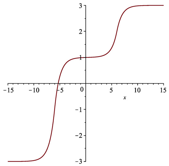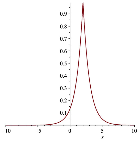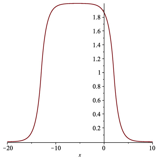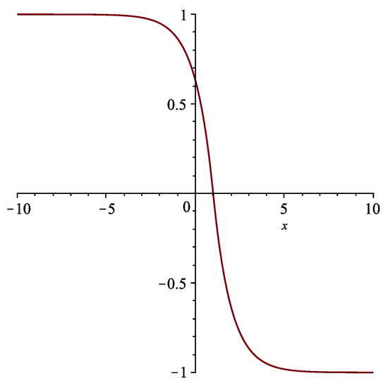 For , we have , which yields , where c is an arbitrary constant. Thus the single kink solution (See Figure 3 and Figure 4) is stationary and it reads