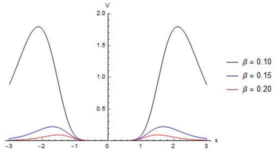 where β and n are parameters controlling the container’s shape and the effective wall’s stiffness, respectively, and k is a small number of particles inside the potential well/container; see Figure 1a for details. Cases k = 1, 3, and 5 were considered for comparison reasons. A small k reduces the likelihood of collisions between the particles to enable us to ignore their interaction events in Lagrangian (1) and minimizing any statistical effects of large numbers.