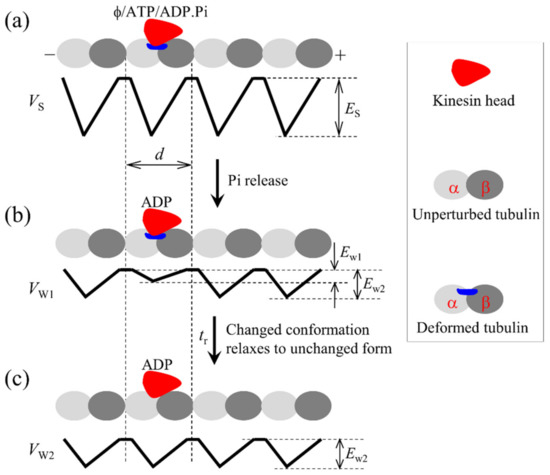 - Sumi, T. Design principles governing chemomechanical coupling of kinesin. Sci. Rep. 2017, 7, 1163. [Google Scholar] [CrossRef]