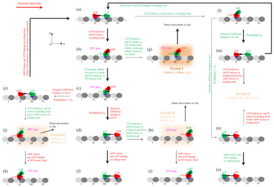 - Xie, P.; Guo, S.-K.; Chen, H. A generalized kinetic model for coupling between stepping and ATP hydrolysis of kinesin molecular motors. Int. J. Mol. Sci. 2019, 20, 4911. [Google Scholar] [CrossRef]