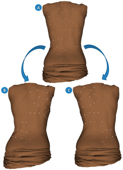 Directional and fluctuating asymmetries have been previously evidenced in the human body. Studies regarding the human crania and face [1,2] or pelvic asymmetries are common [3], but there is a lack of research about their presence in the human torso, specifically in patients with scoliosis. In the 1990s, the theory of idiopathic scoliosis as a result of developmental instability during growth won popularity. Based on the significant presence of directional and fluctuating asymmetries in the torso of patients with idiopathic scoliosis, Goldberg et al. [4,5] gave relevance to the role of both variables in their comprehensive study of the condition. This research line remained latent until the recent appearance of new methodologies applied to the study of the asymmetric properties of the human torso. Specifically, geometric morphometrics (GMM) has been used for decades in other fields of biological research [6] and has recently brought new quantitative and qualitative variables to the study of idiopathic scoliosis [7]. Thus, higher levels of fluctuating asymmetry have been evidenced in other clinical conditions different from scoliosis in the form of positive correlation between asymmetries and symptoms [8]. Furthermore, in a recent study about fluctuating and directional asymmetries using two-dimensional GMM [9], the presence of both types of asymmetry has been revealed in a small group of patients with adolescent idiopathic scoliosis (AIS). However, the absence of a control group, the limited sample size and the two-dimensional approach to a three-dimensional condition such as idiopathic scoliosis led to three major limitations. For this reason, we aimed to test for the presence of both asymmetric traits using three-dimensional data and a control group. Our first hypothesis to be tested is that idiopathic scoliosis is just an increment in the range of variability of the natural asymmetries of the human torso, as was previously suggested in Beyer et al. [10]. In other words, fluctuating and directional asymmetries are expected to be found in control and scoliosis groups, but with significantly higher levels of individual scores among the individuals of the scoliosis group.