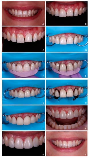 Esthetics is currently an increasing concern for patients, particularly in anterior teeth, and clinicians are being progressively requested to provide highly esthetic results without increasing costs and clinical working time [1]. Irregular shape and tooth position, and the presence of diastemas and discolorations in the anterior region, are the main aspects for facial and smile asymmetry and disharmony and are responsible for esthetic complaints amongst patients [2,3]. The current approach for managing such complaints includes a variety of treatment options, such as prosthodontic rehabilitation, orthodontic treatment, and direct restorations [1,3,4,5].