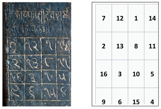 Combinatorics is an arm of discrete mathematics that deals with the enumeration, construction, and classification of configurations with a specified set of constraints. The current author [] has previously explored the connection between combinatorics and south Indian music theory through the enumeration and construction of non-kinky musical scales arising from the 12-tone chromatic scale with certain constraints that eliminate the occurrence of notes with the same frequency but different names within the 12-tone polyphonic music system. The concept of various types of symmetries of musical scales, including chiral scales, is explored in the present article. Such combinatorial techniques facilitate the enumeration and construction of big data of musical patterns, which can further be explored with machine learning, neural networks, and artificial intelligence. Combinatorics also finds applications in the formulations and solutions of problems in western music theory, such as Babbitt’s partition problems within the 12-tone musical compositions [,,,,,,], one of which asks for an algorithm to enumerate all mxm matrices with entries drawn from the set {1, 2, …, n} such that all rows and columns have the sum n. There are other variations to Babbitt’s partitions. These problems of musical theory bear a direct relation to combinatorial Latin squares, magic squares, Hadamard matrices, and balanced block designs, which we discuss in this review. One of the oldest combinatorial problems pertinent to balanced designs dates back to 587 CE, as described in the treatise of Brhat Samhita by Varahamihira; the problem seeks to construct a combinatorial symmetric design to create a perfume by mixing four substances selected from sixteen different fragrant chemicals using a magic square. Perhaps this is an early demonstration of the use of Hadamard transforms in analytical chemistry. Moreover, as illustrated in this review, the Chautisa yantra on the wall of the 12th Century Parshvanath temple in Khajuraho, India, is a quintessential element of a combinatorial balanced design.