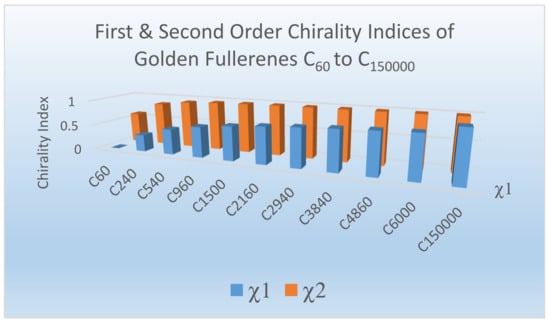 The Möbius transform illustrated above for a conjugacy class was iterated by the author [] using a computer code in order to generate the cycle index polynomials of all hyperplanes for all 110 irreducible representations. As this was extensively considered in a previous article [], further details can be obtained from reference []. In the next section, we show how the cycle index polynomials and the characters of various irreducible representations can be used in enumerative combinatorics of big data sets, including giant fullerenes up to C150,000 in computing their chirality and spectroscopic properties.