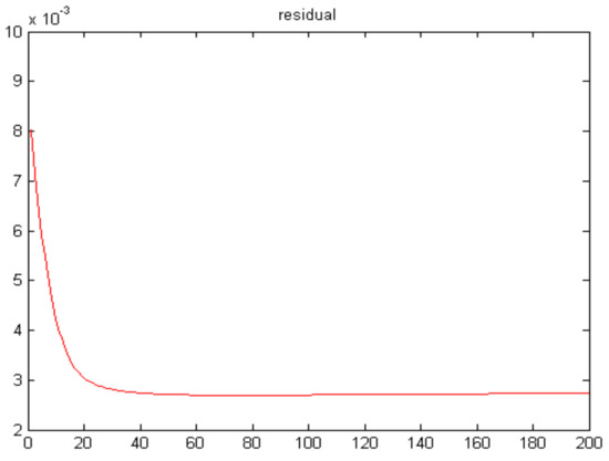 Since the loss function in this paper is nonlinear, a natural question is whether BDA-SN can converge. In this paper, the change in residual error during the iteration process is observed on the dataset of Levin et al. [5] to evaluate convergence quantitatively. It can be seen from Figure 17 that BDA converges after about 40 iterations, which verifies the effectiveness of the algorithm.